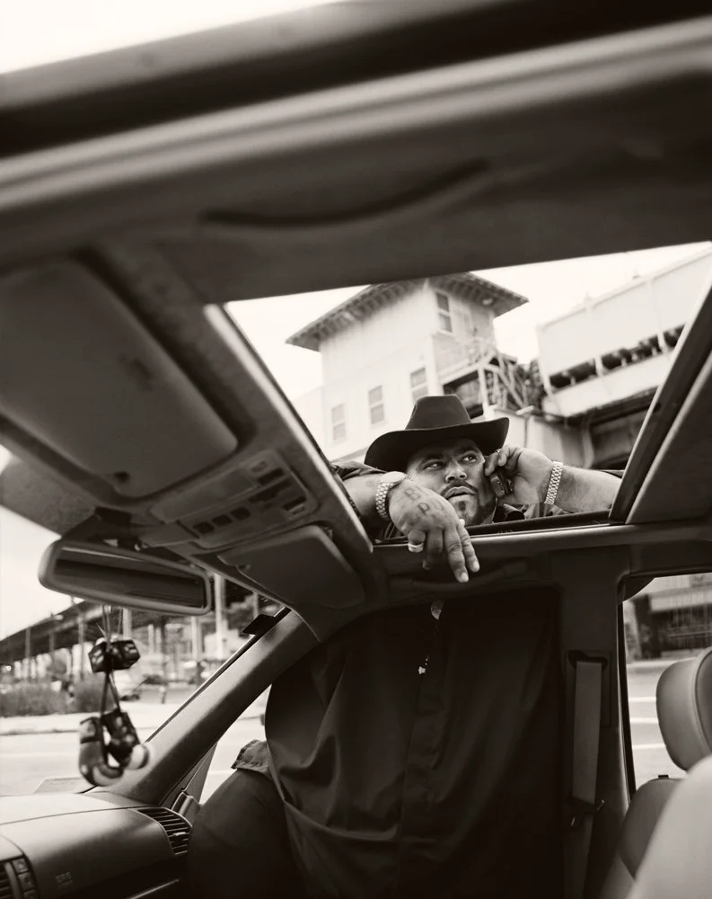 This image was from the Terror Squad album session, where I photographed each of the group members in solo shots and then as a group. If you know anything about Hip-Hop photo sessions, you know that they often don’t go as planned… this shoot was no exception. At the beginning of the day, one of the members of the group was “escorted” to another location by some gentlemen dressed in blue, which entirely changed the trajectory of the day. The whole creative direction quickly became about communication between the other members of the group to get their man out of a tricky situation. Rooted in this storytelling, this image was one of the puzzle pieces of connection, a phone call being made as a rallying cry to free up a member of the squad.