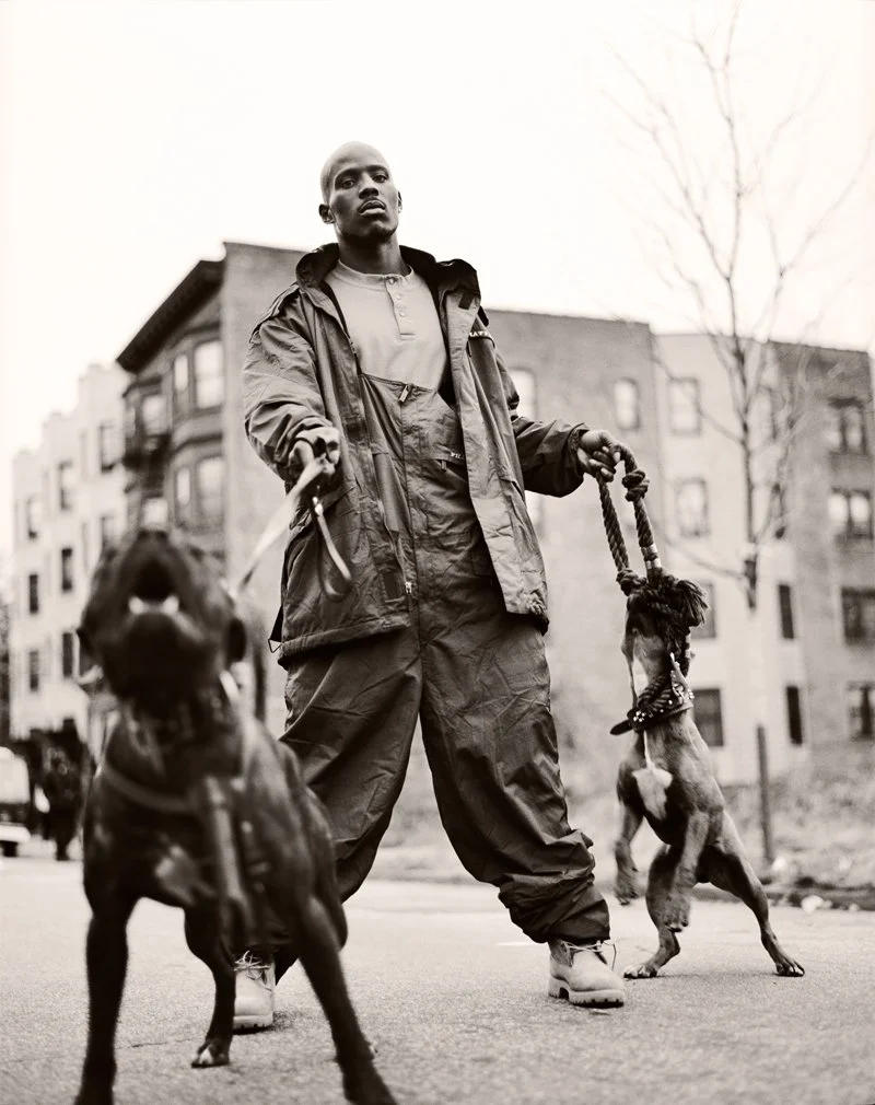 I had, and continue to have, a special bond with DMX. We understood each other. This image was made when the song “Where My Dogs At?” had just hit the airwaves in NYC. It was a rallying cry for those without a powerful voice of their own; the misunderstood, struggling, fighting, and surviving. All of the hits of the moment flaunted a flashy lifestyle - shiny suits, jewelry, cars, money - and DMX out of nowhere grounded the conversation. He showed that his “Tims" were planted firmly on the ground and that he walked powerfully in this world. He gave a loud voice to the people who couldn’t relate to the flash. He was the voice of the unheard.